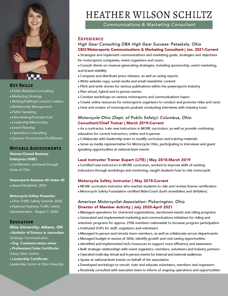- Serve as media representative for Motorcycle Ohio, participating in interviews and guest speaking opportunities at national-level events